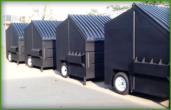 Front end load, rear load containers, roll off open top containers, roll off closed top containers, and compactors